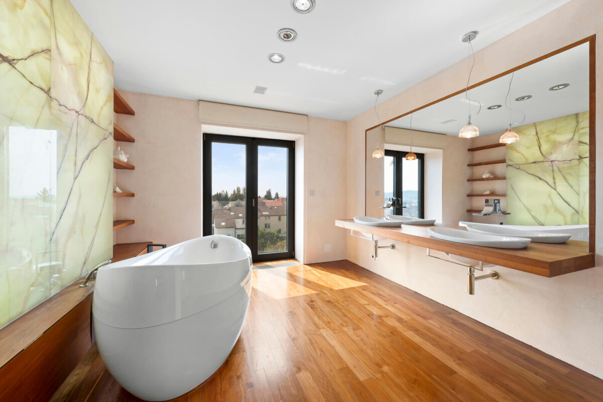Nájemné činí 46.000 Kč měsíčně, k tomu se připočítávají vyúčtovatelné služby ve výši 7.000 Kč. Vratná kauce je stanovena na 150.000 Kč a provize za zprostředkování činí 46.000 Kč. Byt bude k nastěhování od 1. listopadu.