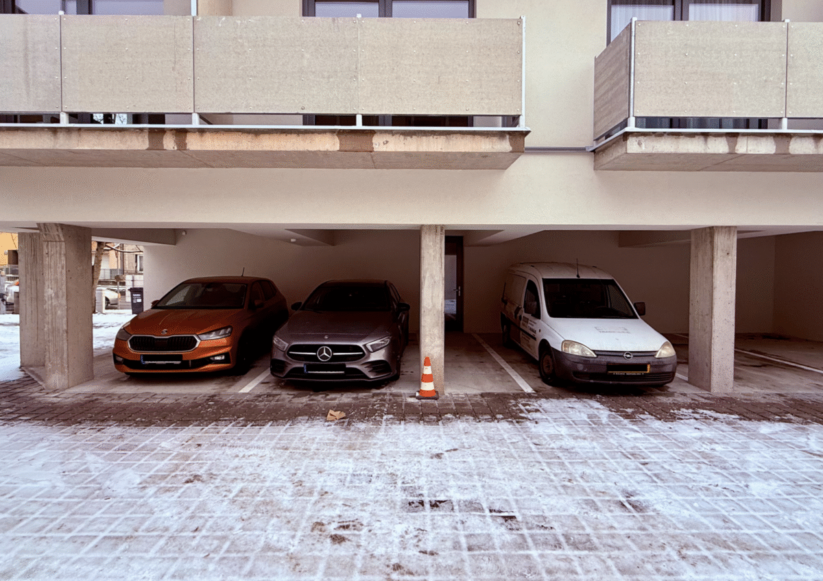 Vjezd do objektu je zabezpečen elektrickou bránou na dálkové ovládání. Parkování je vhodné pro osobní automobil, ideální pro rezidenty v okolí nebo pro každého, kdo hledá klidné a dlouhodobé řešení parkování bez stresu z hledání volného místa.
