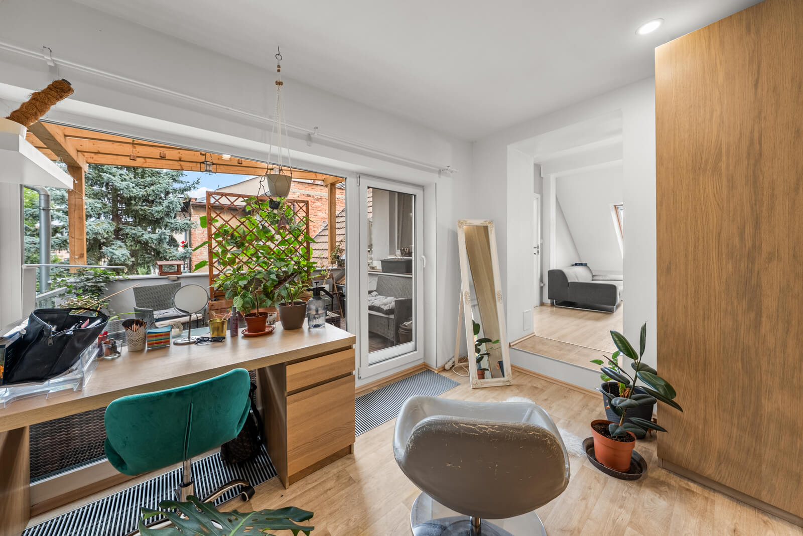 Nabízíme jedinečnou příležitost ke koupi krásného podkrovního bytu 3+kk na ulici Huskova v Brně-Černovicích. Byt má užitnou plochu 57 m², sklep a navíc prostornou terasu o velikosti 12,1 m² orientovanou do klidného vnitrobloku – ideální místo pro ranní kávu nebo večerní posezení s přáteli.