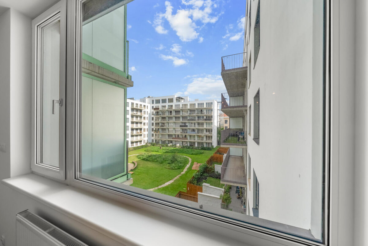 Nabízíme k pronájmu světlý ateliér o dispozici 1+kk v novostavbě Paláce Trnitá. Jednotka se nachází v 5. nadzemním podlaží a její celková užitná plocha činí 39 m² včetně sklepa, který je součástí nájmu.