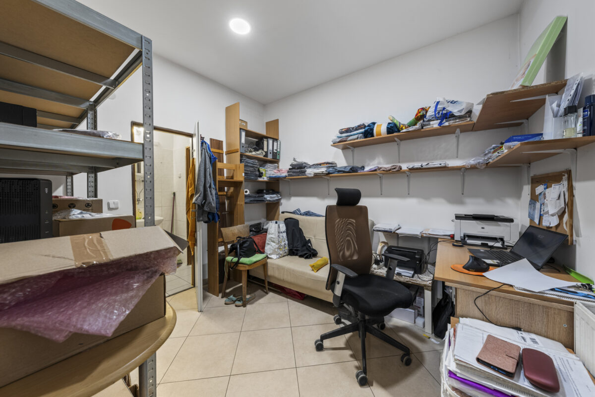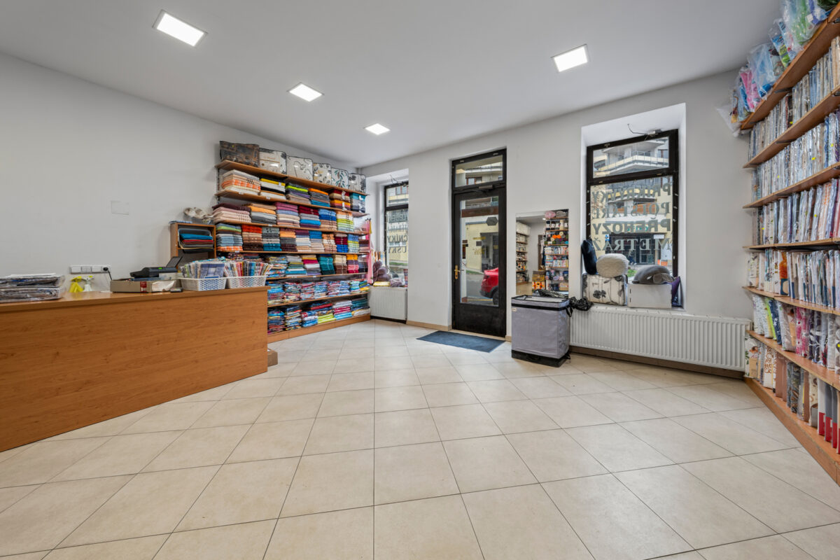 Prostor je aktuálně využíván jako obchodní jednotka a svou dispozicí nabízí široké možnosti využití – ideální pro prodejnu, showroom, služby či jiné podnikání. Dominantou je velká otevřená prodejní plocha o velikosti 65m², na kterou navazuje menší zázemí v podobě kanceláře a sociálního zařízení (10 m2).