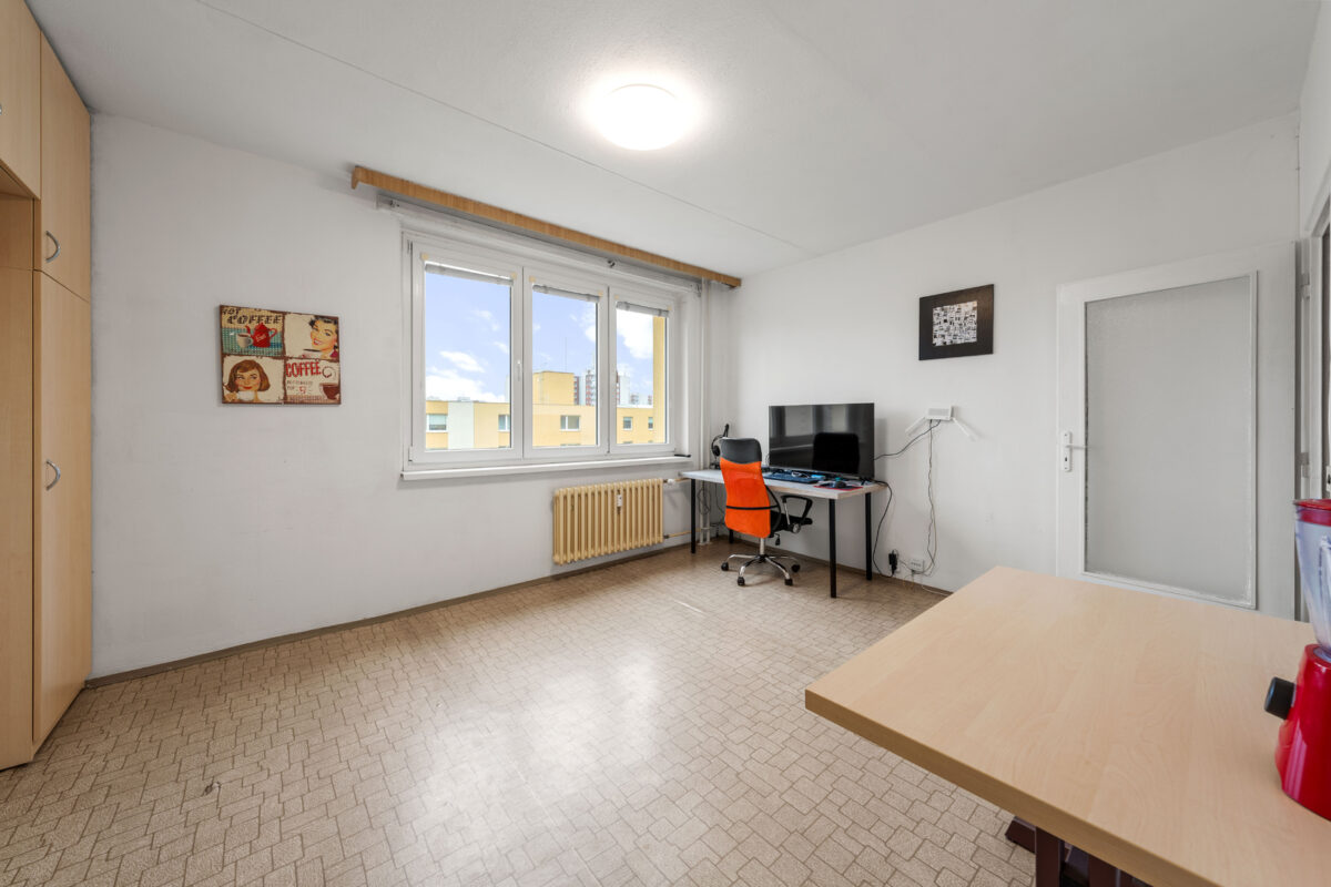 Byt je v původním stavu, a je tak ideální volbou pro toho, kdo si chce bydlení upravit přesně podle svých představ, nebo hledá zajímavou investiční příležitost. Dispozici tvoří prostorná vstupní chodba, ložnice, obývací pokoj s prostorem pro kuchyňský kout, koupelna a samostatná toaleta. Okna jsou orientována na jižní stranu, byt je tedy příjemně světlý.
